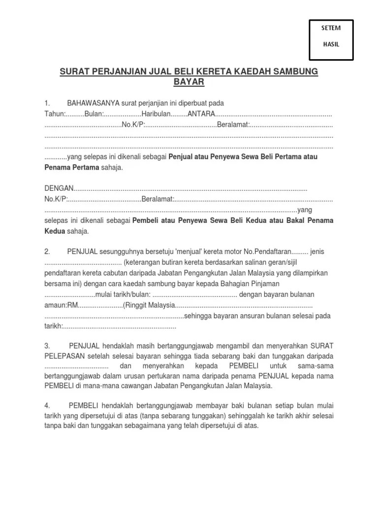 Surat Perjanjian Jual Beli Kereta Sambung Bayar Pdf